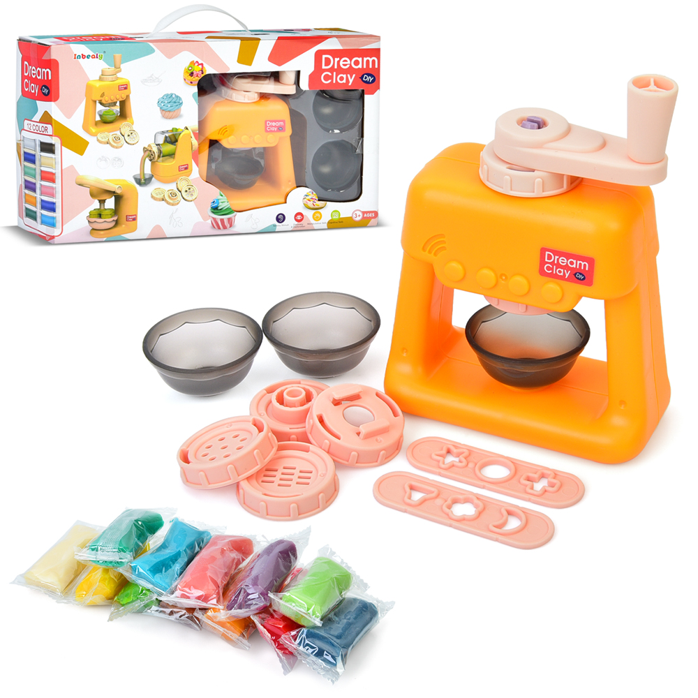 Пластилін MK 5461 (18шт) 12 кольорів (в стіках), апарат-прес 14,5см, насадки, посуд, в кор-ці, 32-18