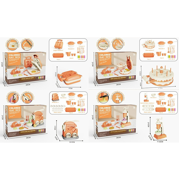 Пластилін MK 5467 (24шт) 6 кольорів(стіках), апарат-прес, посуд, інструменти, 4 види, в кор-ці, 29-2