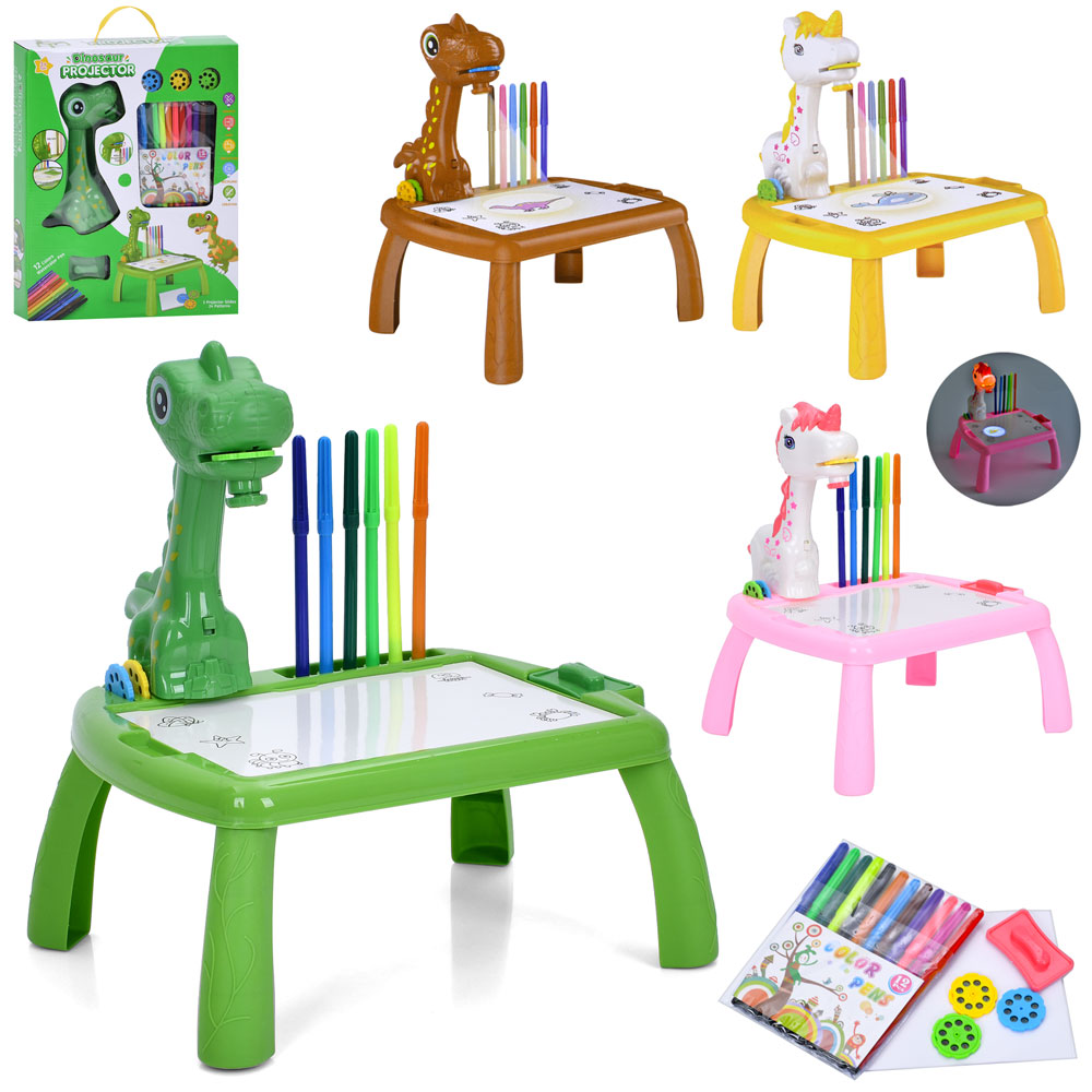 Проектор 222-18-17 (48шт) столик, 29,5-23-32см, музика, світло, слайди (24картинки), фломастери 12шт