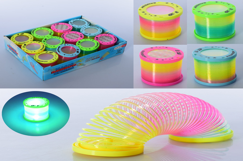 Пружинка 55601-1 (360шт) 6см, свет, бат(табл), 12шт(4цвета) в дисплее, 23,5-17,5-6см