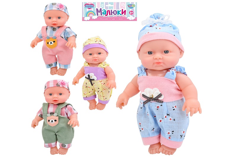 Пупс M201-R-538-W (48шт) 23см, звук, 4 види, бат(табл), у пакеті, 19-34-7см