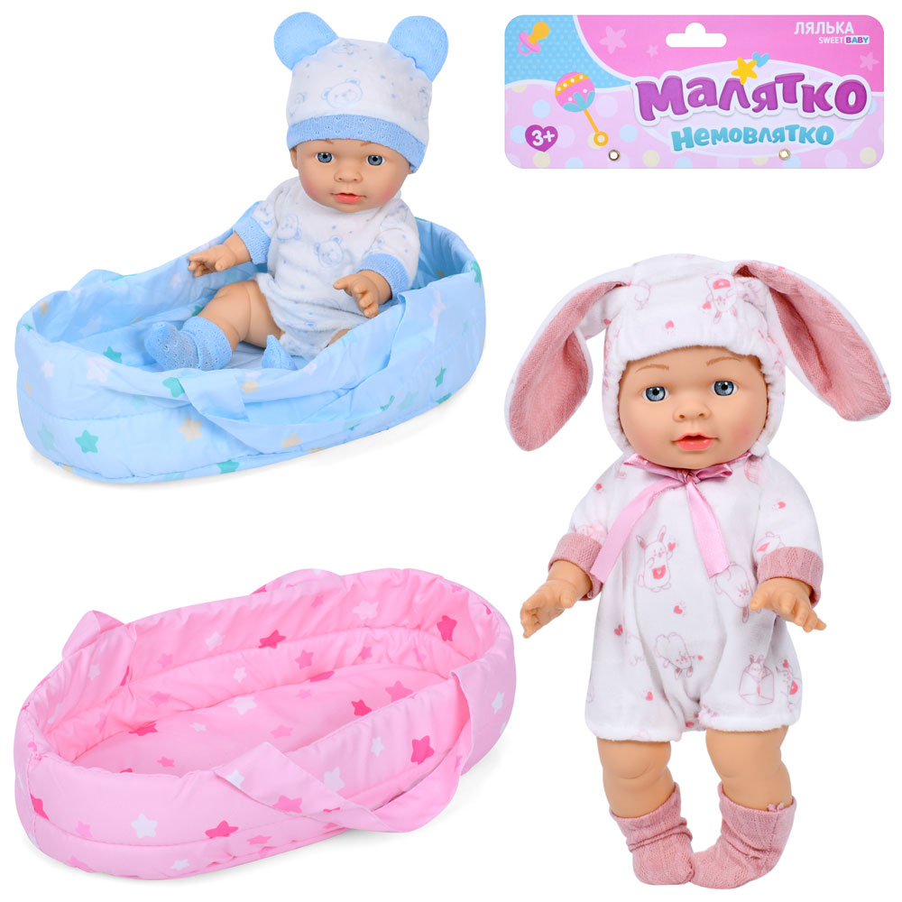 Пупс YL2430F-E-D-DM-UA (18шт) 30см, люлька-переноска, 2 види, у пакеті, 24-46-8см