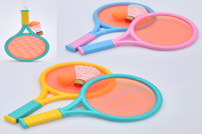 Ракетка MS 4380 (42шт) дитяча, 2шт, 35,5см, 2 кольори, волан, м'ячик пластик 5см, 2 кольори, у сітці