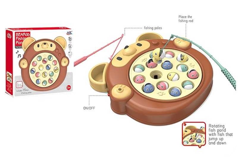 Риболовля 104 C (60) “Ведмедик”, ігрове поле обертається, 15 рибок, 2 вудки, мелодія, від батарейок,