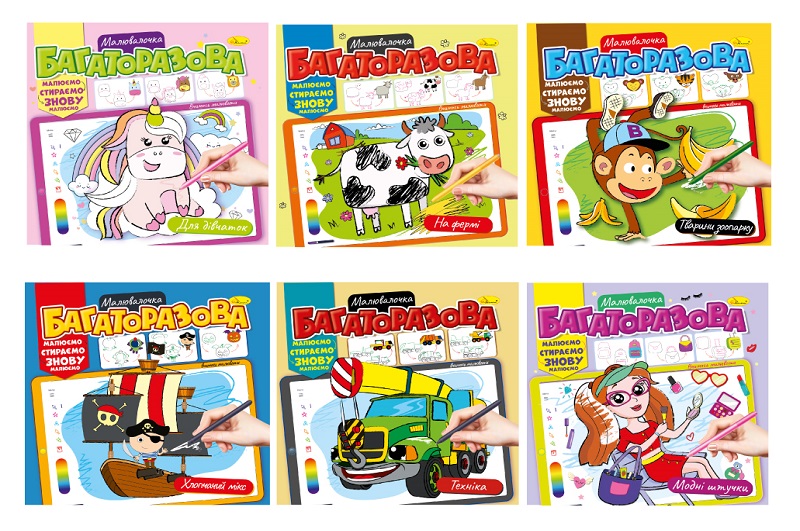 Розмальовка Багаторазова малювалочка" Мікс РМ-54УПАК6шт"