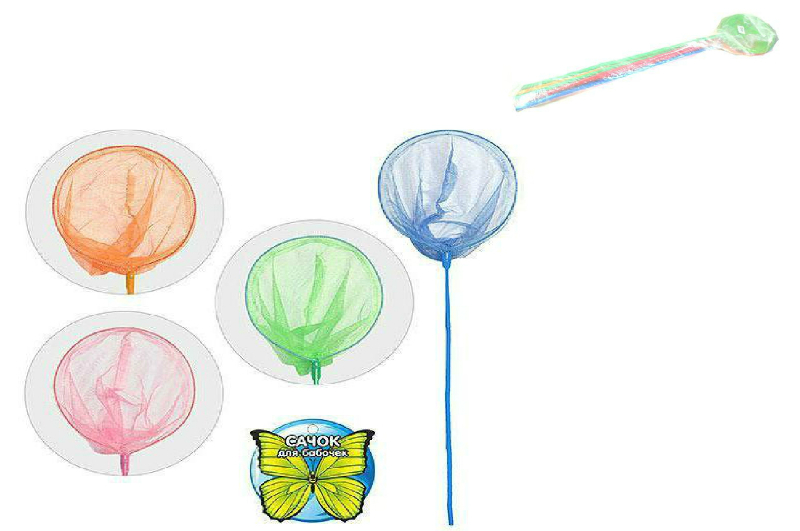 Сачок для метеликів M 0064 U/R УП 10 шт (100шт) довж146см,довж.ручки120см,діам26см,бамбук, мікс кол