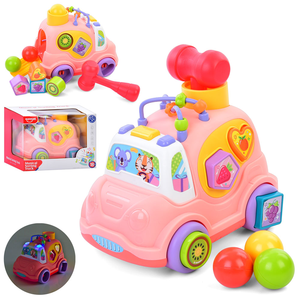 Сортер HE0548 (12шт) машина 24см, 4 фігурки, стукалка (молоточок, 3 кульки), музика, світло, на бат-