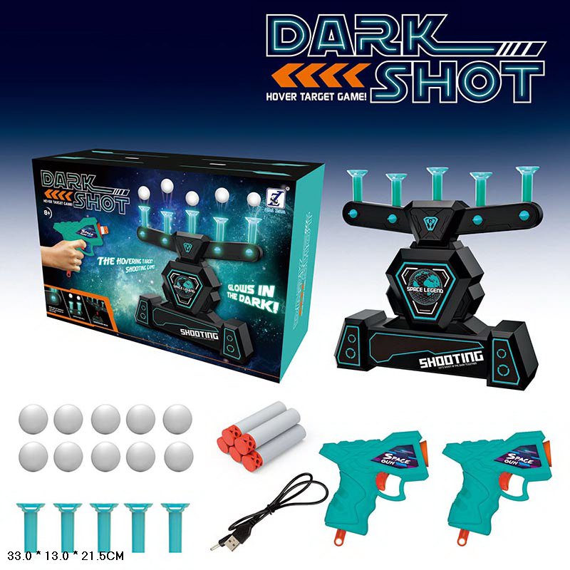 Тир арт. 3362 (24шт/2) батар, світиться в темряві, м'які кулі, кульки, мішені, короб. 33*13*21,5