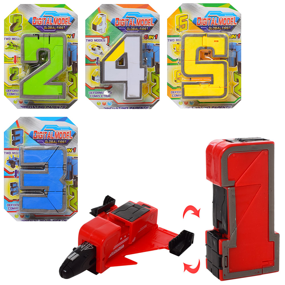 Трансформер 168-105ABCDE (192шт) робот+цифра, 5видів, на листі, 17-12-3см