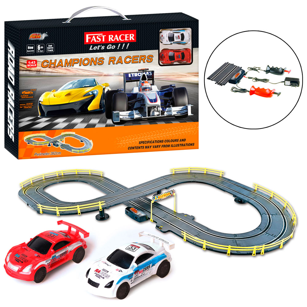 Трек 6610-B (8шт) д/к(на шнурі), 1:43, 362см, машинка 2шт, від мережі 220V, в кор-ці, 55,5-36-5,5см