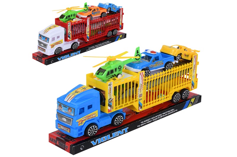 Трейлер 658-1A (36шт) інерція, 32см, вертоліт, машинка 3шт, ігрове поле 50-50см, мікс кольорів, у сл