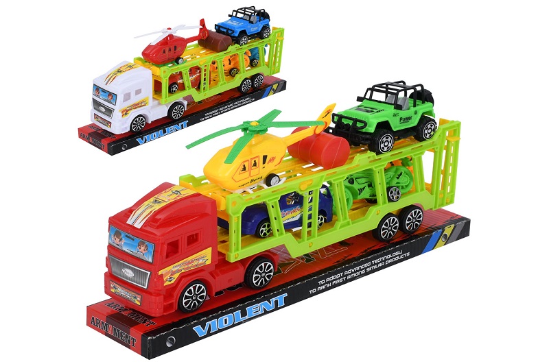 Трейлер 738-23 (36шт) інерція, 32см, вертоліт, машинка 2шт, мотоцикл 2шт, мікс кольорів, у слюді, 34