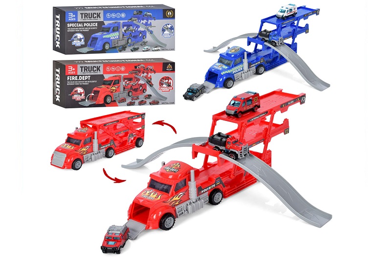 Трейлер 866-103-104A (18шт) 31см, машинки (мет) 7см 3шт, 2 види (поліц,пожеж), в кор-ці 34-13-8,5см