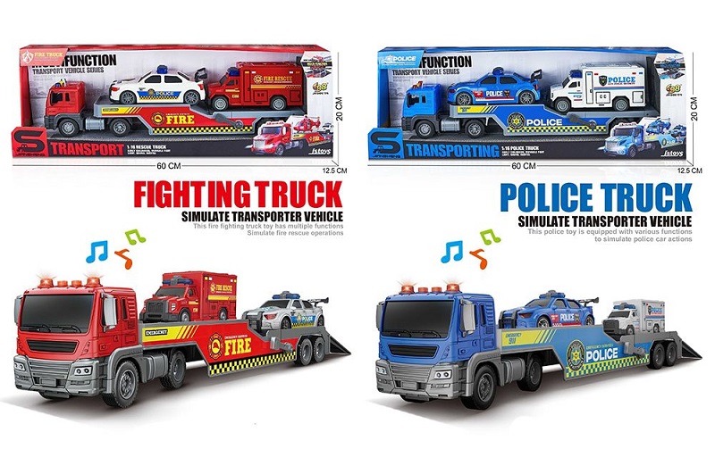 Трейлер JS203A-3C (9шт) інерція, 51см, 1:16, звук, світло, машина 2шт, гумові колеса, 2 види (поліці