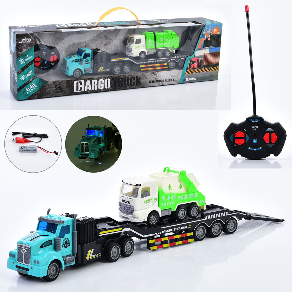 Трейлер QH200-15 (18шт) р/к, акум, 36см, 1:48, світло, гумові колеса, сміттєвоз, USBзарядне, 2 види,