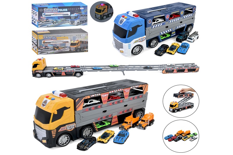 Трейлер T907A-909A (12шт) 38см, звук, світло, гумові колеса, трек, машинки, 2 види(поліція, будтехні