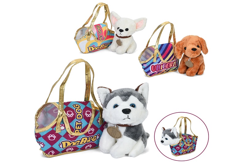 Тварина 7622-115A-16A-17A (42шт) собака, 18см, плюш, сумка (19-13-7см, 1відділення,липучка), 3 види,