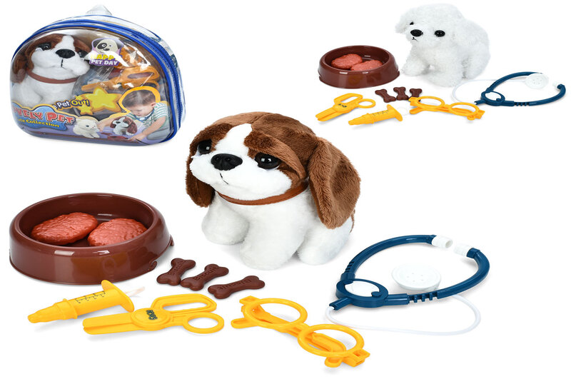 Тварина 908-1 (36шт) собака,19см, набір ветеринара( окуляри, ножиці, стетоскоп), тарілка+їжа, 2 види