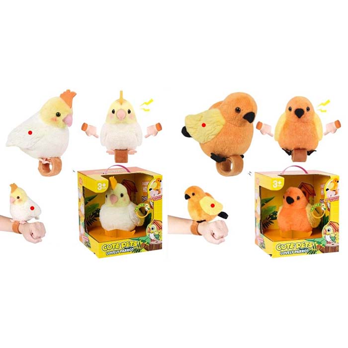 Тварина 933-144-145E (24шт) пташка, від 15см, звук, повторюшка, браслет, плюш, 2 види, на бат-ці, в