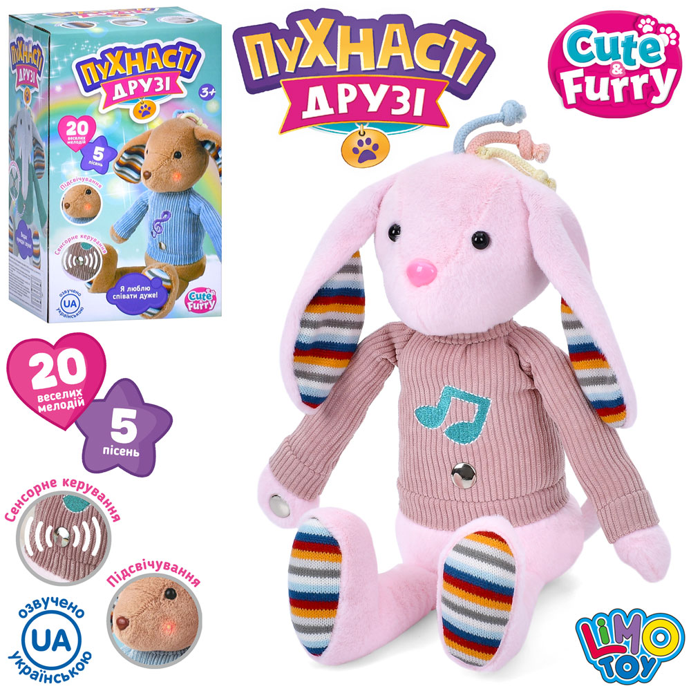 Тварина M 5994 I UA (20шт) зайчик, 36см, сенсорний, музика, пісні (укр, англ), світло, плюш, на бат-