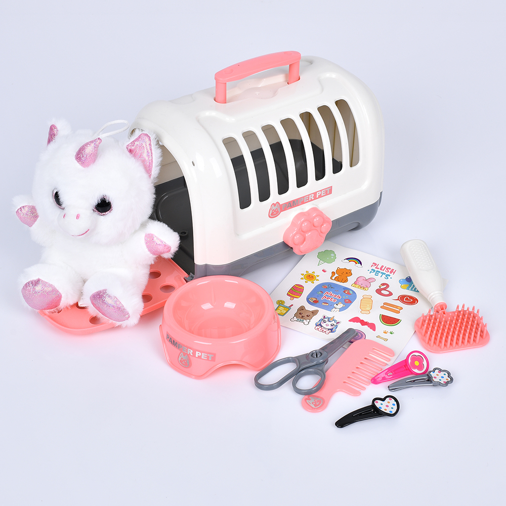 Тварина в переносці 939-53 (36шт) набір грумера, єдиноріг-м'яка іграшка 16-12-10см, плюш, наліпки, у
