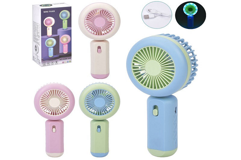 Вентилятор MK 5614 (36шт) 15см, світло, 2 режими, акум, USBзарядне, 4 кольори, в кор-ці, 8,5-16-4см