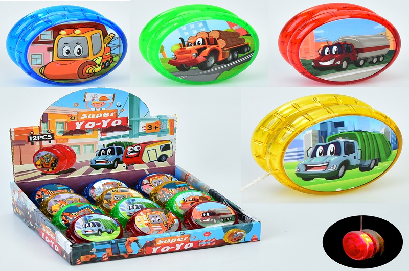 Йо-йо MR 1367-1Упак12шт(72шт) 6см, принт-транспорт, світло, бат(табл)4 кол/мікс вид, 12шт в дисплеї