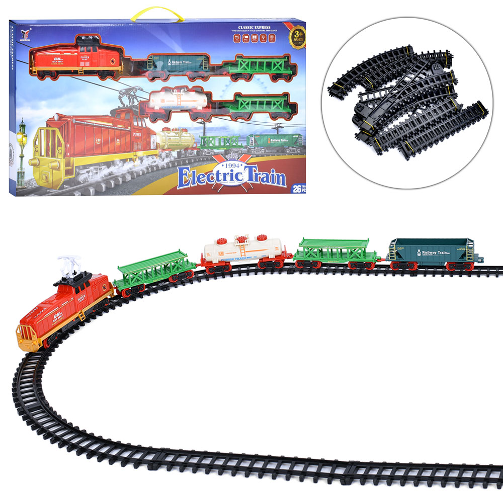 Залізниця 2099-1 (9шт) 165-76,5см, локомотив, 4 вагони, звук, світло, 26дет, на бат-ці, в кор-ці, 72