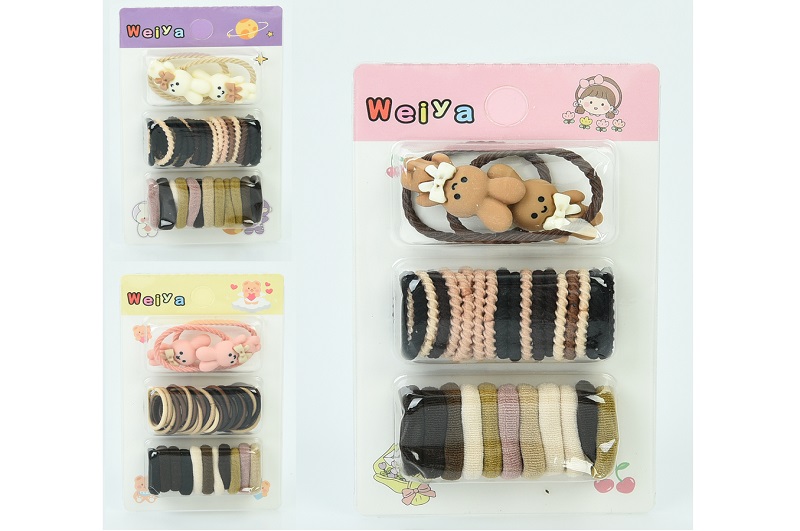 Аксесуар для волосся YG0160 Упак12шт(408шт) набір резинок,3 коль, на листі, 7-11,5-2см, упак паке 12