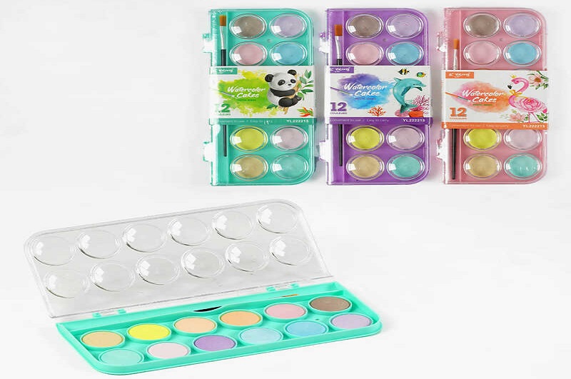 Акварельні фарби C 62072 (144) 12 кольорів, пензлик, пастельні кольори, в плівці, МІКС ВИДІВ