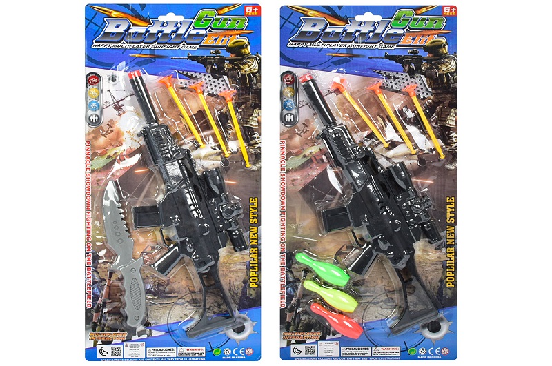 Автомат 0110-0110-1 (120шт) 37см,ніж,кулі-присоски 3шт,кеглі 3шт,2види,на листі 50-22,5-3см