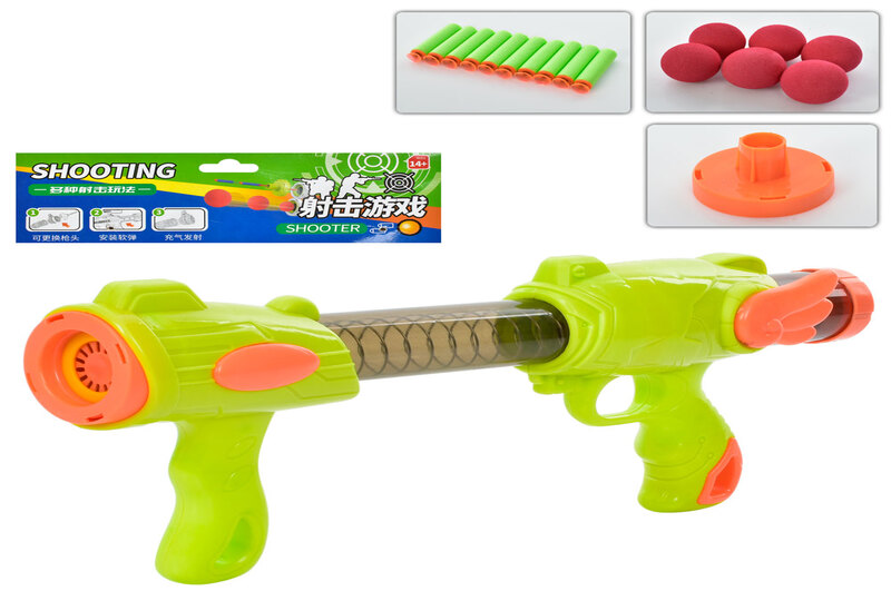 Автомат помповий 93-001-2 (36шт) кулі-кульки 5шт, кулі-присоски 10см, в кульку,23-47-8см