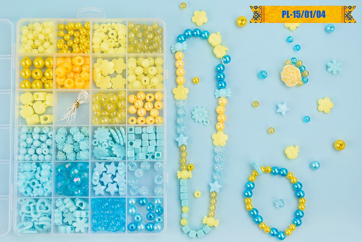 Бісер арт. PL-15/01/04 (120шт/2) патріотичні кольори,намистини, бісер, підвіски, гумова волосінь, ко