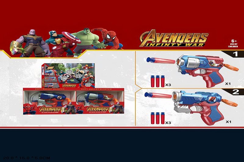Бластер арт. SB457C (144шт/2) 2 види, стріляє поролон. снарядами 3шт. в наборі, в откр.кор.20*15*5см