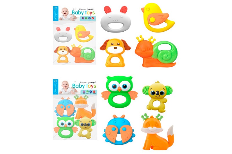 Брязкальце 004-3-4 (48шт) набір 4шт (тварини, комахи), від 7см, прорізувач, 2 види, у пакеті, 17,5-2