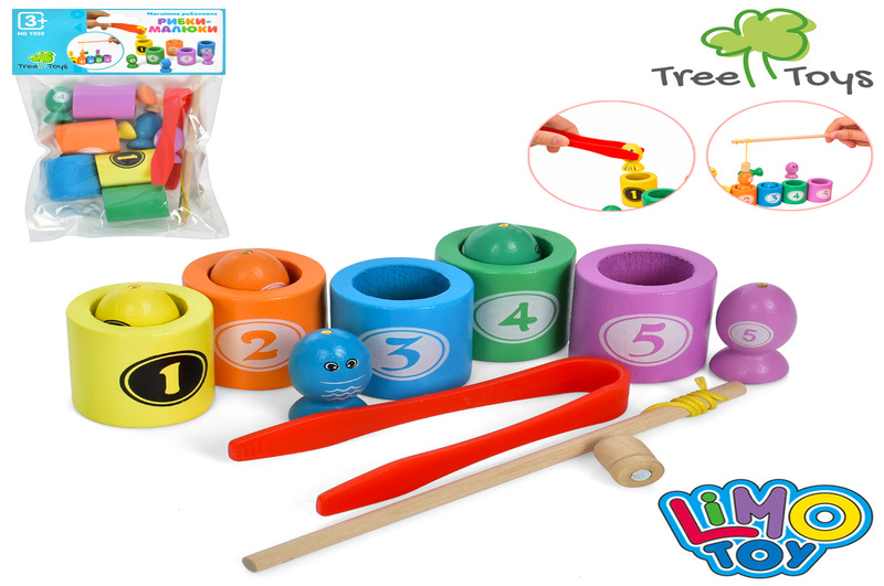 Дерев'яна іграшка Риболовля MD 1939 (30шт) магнітна,рибки,ємності5шт,вудка,пінцет,в кульку24-14,5-4