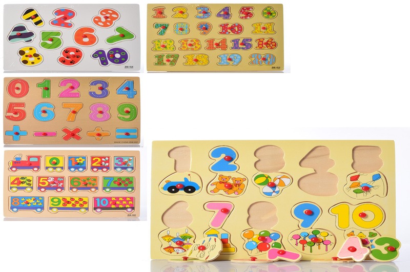 Дерев'яна іграшка Рамка-вкладиш MD 0646 ручка, цифри, 5 видів, 29,5-21,5 см