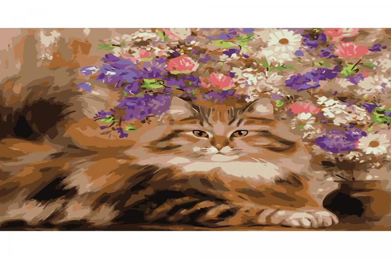 Картина по номерах Кіт біля квітів (GS122) Strateg розміром 40х50 см БЕЗ ЛАКУ