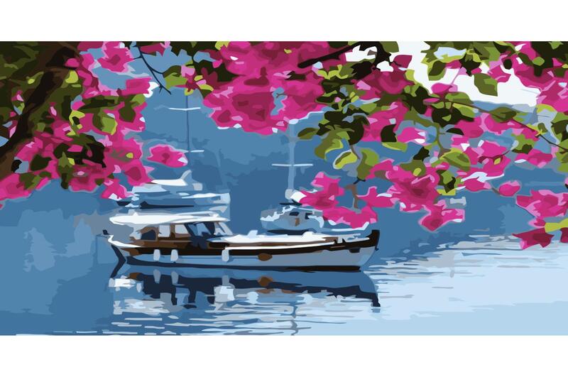 Картина по номерах Корабель на воді Strateg з лаком та рівнем розміром 40х50 см (VA-3775)