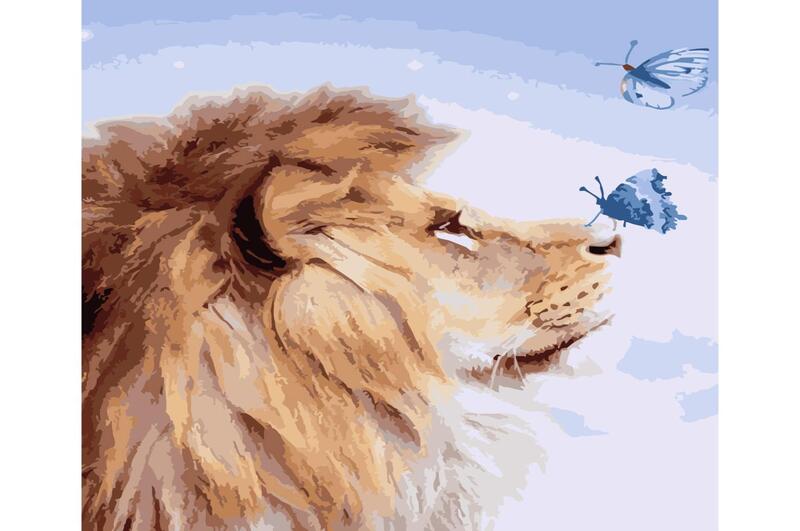 Картина по номерах Лев та метелики SY6773 Strateg з лаком та рівнем розміром 40х50 см