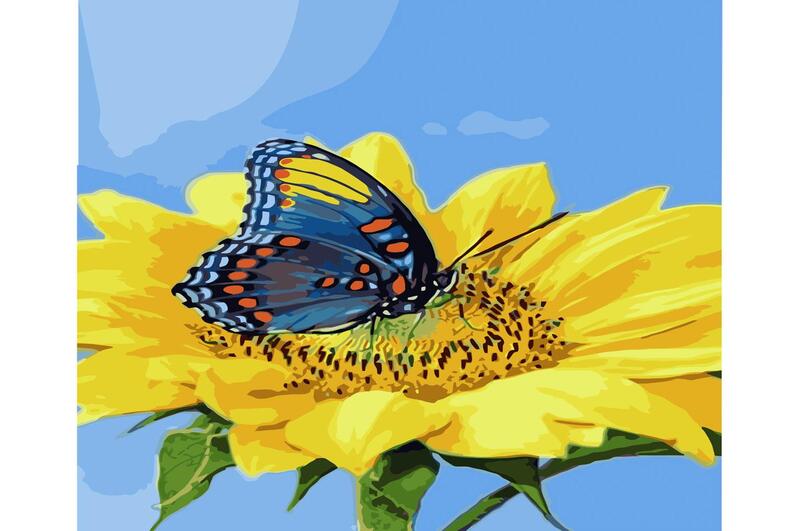 Картина по номерах Метелик на соняшнику Strateg з лаком та рівнем розміром 40х50 см (VA-3652)