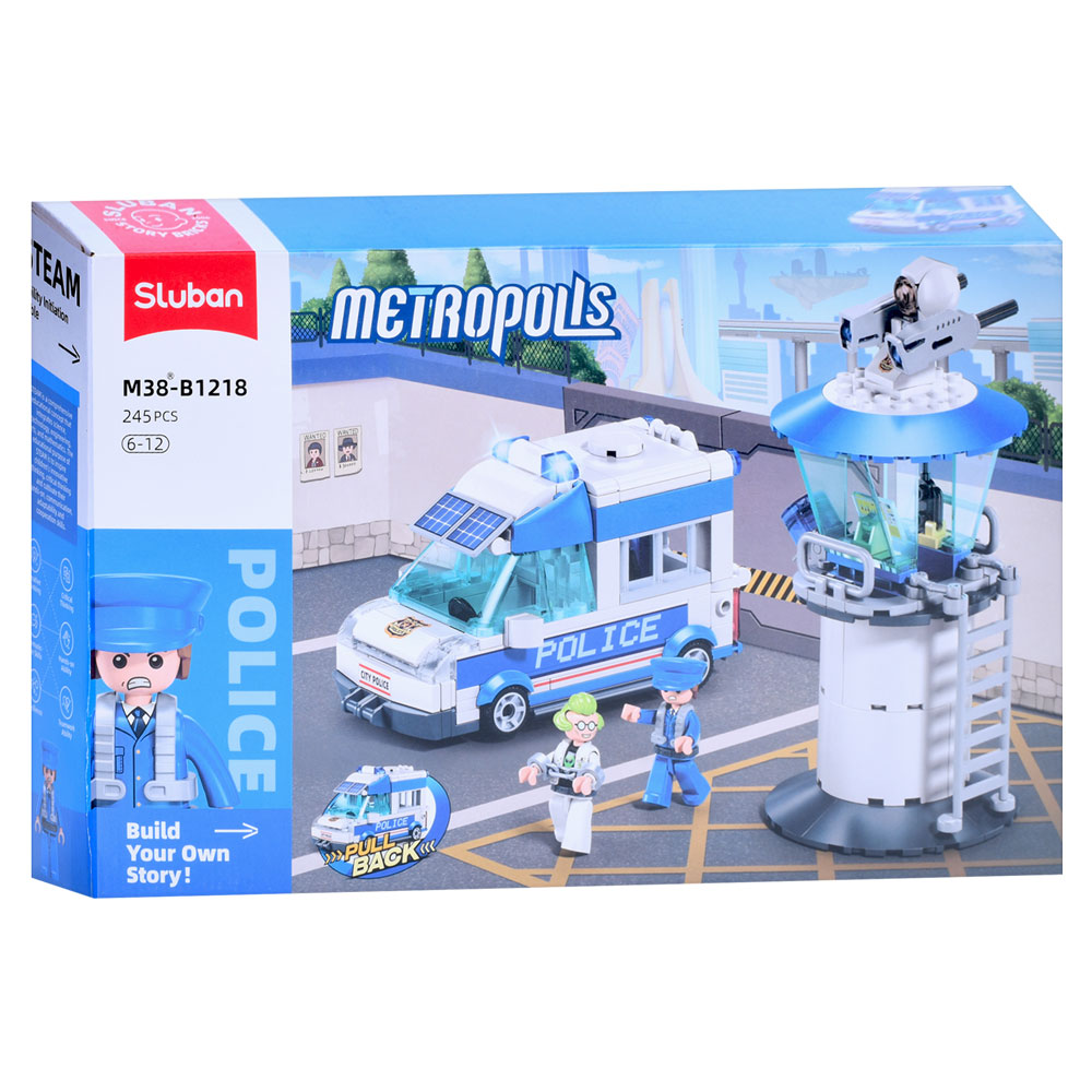 Конструктор SLUBAN M38-B1218 (16шт) поліція, вежа, машина 12см, фігурки, 245дет, в кор-ці, 38-24-7см