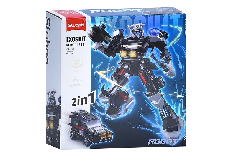 Конструктор SLUBAN M38-B1316 (32шт) 2в1(робот 16см, машина), поліція, фігурка, 247дет, в кор-ці, 22-