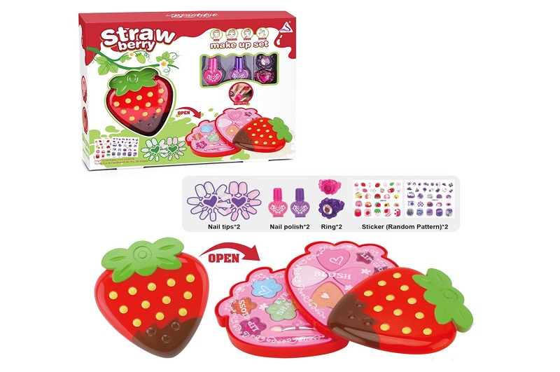 Косметика JYN-206 (24шт) полуниця, 2 яруси, 12-11-3,5см, тіні, набір для манікюру (лак 2шт, наліпки,