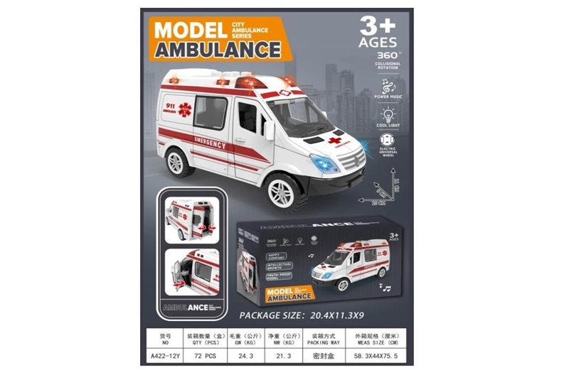 Машина батар. арт. A422-12Y (72шт/2) світло,звук,у короб.20,4*11,3*9см
