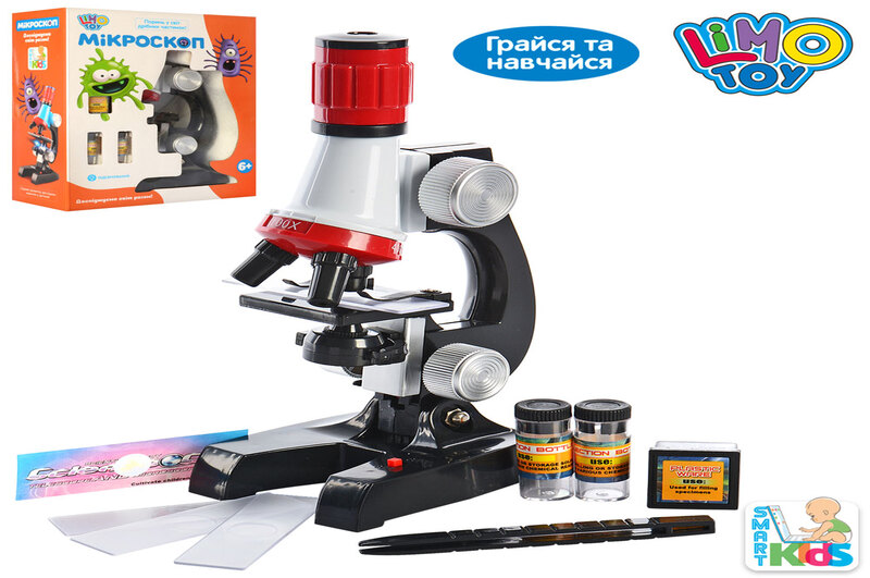 Мікроскоп SK 0006 (60шт) 19,5см, світ, стікла, пробірки 2 шт,2кол, на бат-ці, в кор-ці, 18-25-7,5см