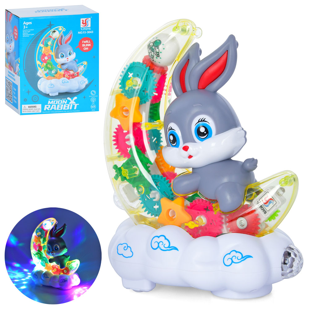 Музична іграшка YJ-3043 (18шт) кролик на місяці 20см, шестерні, танцює, музика, світло, на бат-ці, в