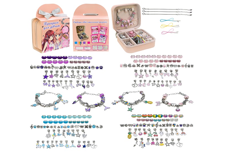 Набір аксесуари для дівчат арт. B4351 (20шт) типу пандора, у шкатулці, 3 браслети, 3 підвса на шию