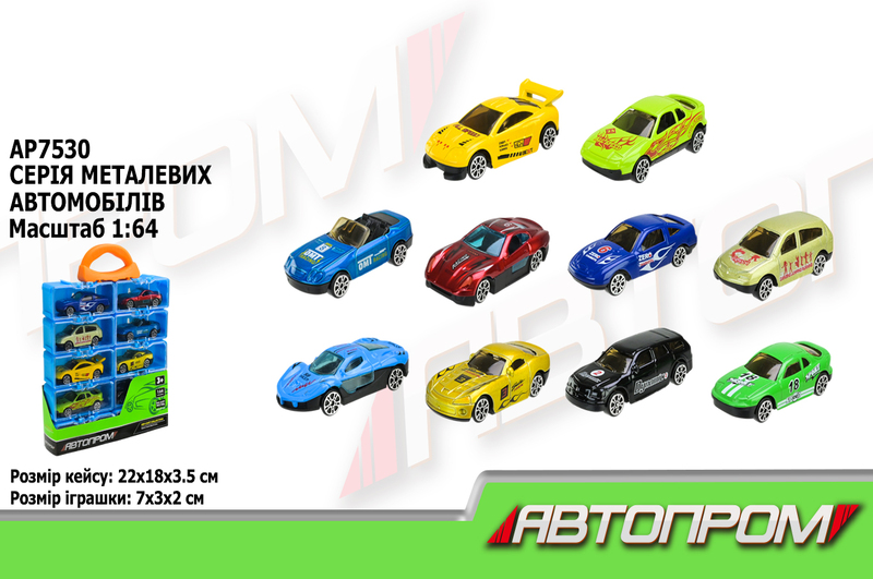 Набір машин мет. АВТОПРОМ арт. арт.AP7530 (48шт/2) 10 машинок у кейсі 22*18*3,5см