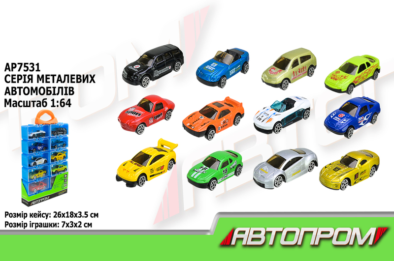 Набір машин мет. АВТОПРОМ арт. арт.AP7531 (48шт/2) 12 машинок у кейсі 26*18*3,5см